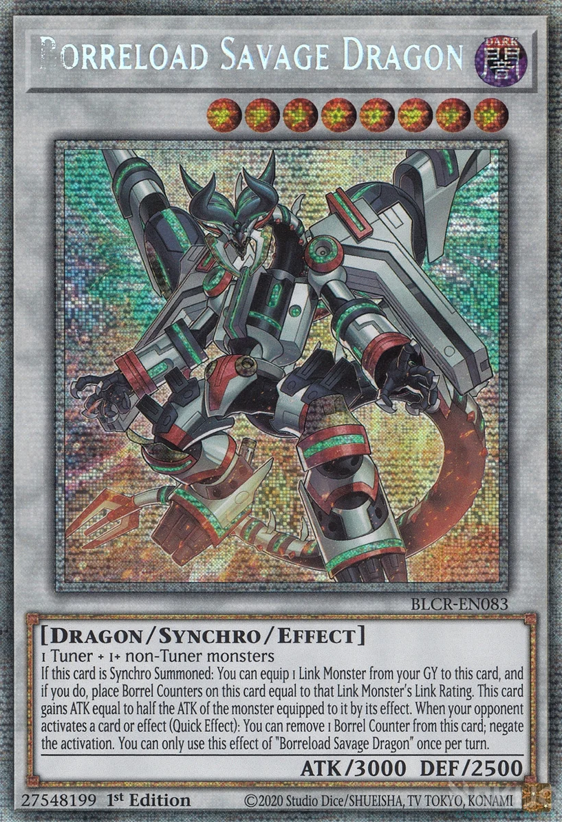 If this card is Synchro Summoned: You can equip 1 Link Monster from your GY to this card, and if you do, place Borrel Counters on this card equal to that Link Monster's Link Rating. This card gains ATK equal to half the ATK of the monster equipped to it by its effect. When your opponent activates a card or effect (Quick Effect): You can remove 1 Borrel Counter from this card; negate the activation. You can only use this effect of "Borreload Savage Dragon" once per turn.