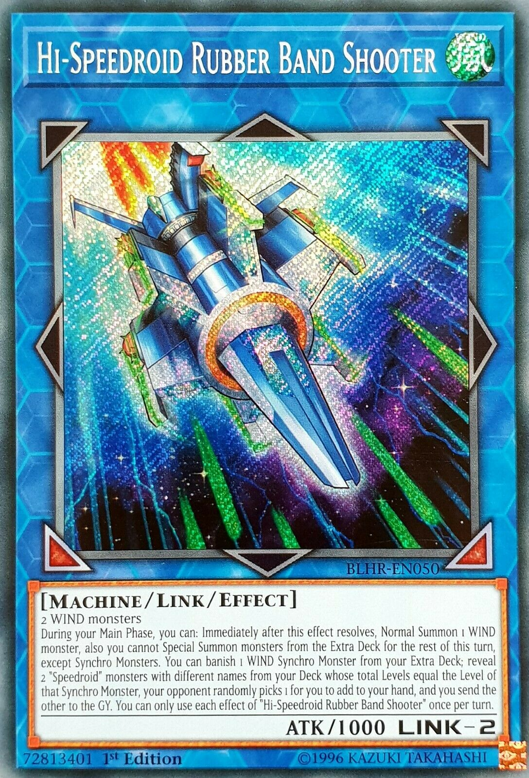 During your Main Phase, you can: Immediately after this effect resolves, Normal Summon 1 WIND monster, also you cannot Special Summon from the Extra Deck for the rest of this turn, except Synchro Monsters. You can banish 1 WIND Synchro Monster from your Extra Deck; reveal 2 "Speedroid" monsters with different names from your Deck whose total Levels equal the Level of that Synchro Monster, your opponent randomly picks 1 for you to add to your hand, and you send the other to the GY. You can only use each effect of "Hi-Speedroid Rubber Band Shooter" once per turn.
