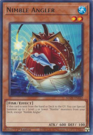 If this card is sent from the hand or Deck to the GY: You can Special Summon up to 2 Level 3 or lower "Nimble" monsters from your Deck, except "Nimble Angler".