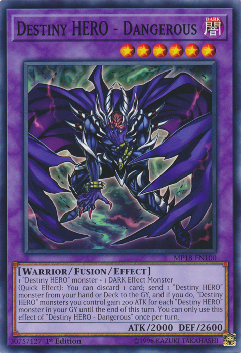 (Quick Effect): You can discard 1 card; send 1 "Destiny HERO" monster from your hand or Deck to the GY, and if you do, "Destiny HERO" monsters you control gain 200 ATK for each "Destiny HERO" monster in your GY until the end of this turn. You can only use this effect of "Destiny HERO - Dangerous" once per turn.