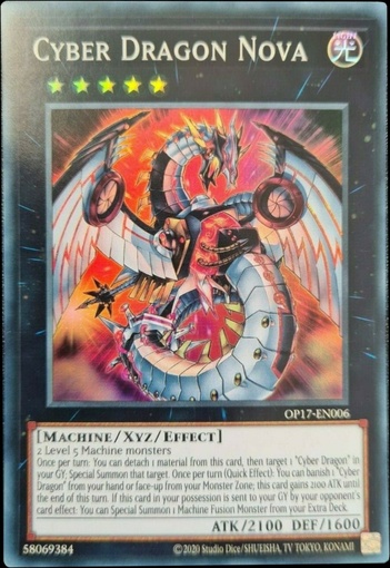 Once per turn: You can detach 1 material from this card, then target 1 "Cyber Dragon" in your GY; Special Summon that target. Once per turn (Quick Effect): You can banish 1 "Cyber Dragon" from your hand or face-up from your Monster Zone; this card gains 2100 ATK until the end of this turn. If this card in your possession is sent to your GY by your opponent's card effect: You can Special Summon 1 Machine Fusion Monster from your Extra Deck.