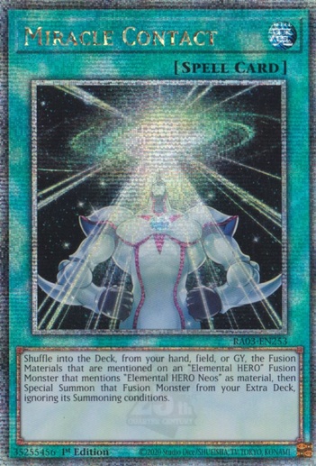 Shuffle into the Deck, from your hand, field, or GY, the Fusion Materials that are mentioned on an "Elemental HERO" Fusion Monster that mentions "Elemental HERO Neos" as material, then Special Summon that Fusion Monster from your Extra Deck, ignoring its Summoning conditions.