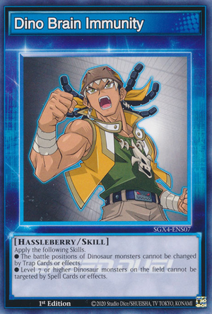 ● Level 7 or higher Dinosaur monsters on the field cannot be targeted by Spell Cards or effects.