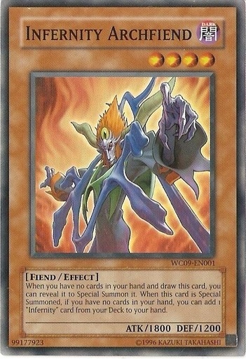 When you draw this card, if you have no other cards in your hand: You can reveal this card; Special Summon this card from your hand. When this card is Special Summoned: You can add 1 "Infernity" card from your Deck to your hand. You must have no cards in your hand to activate and to resolve this effect.